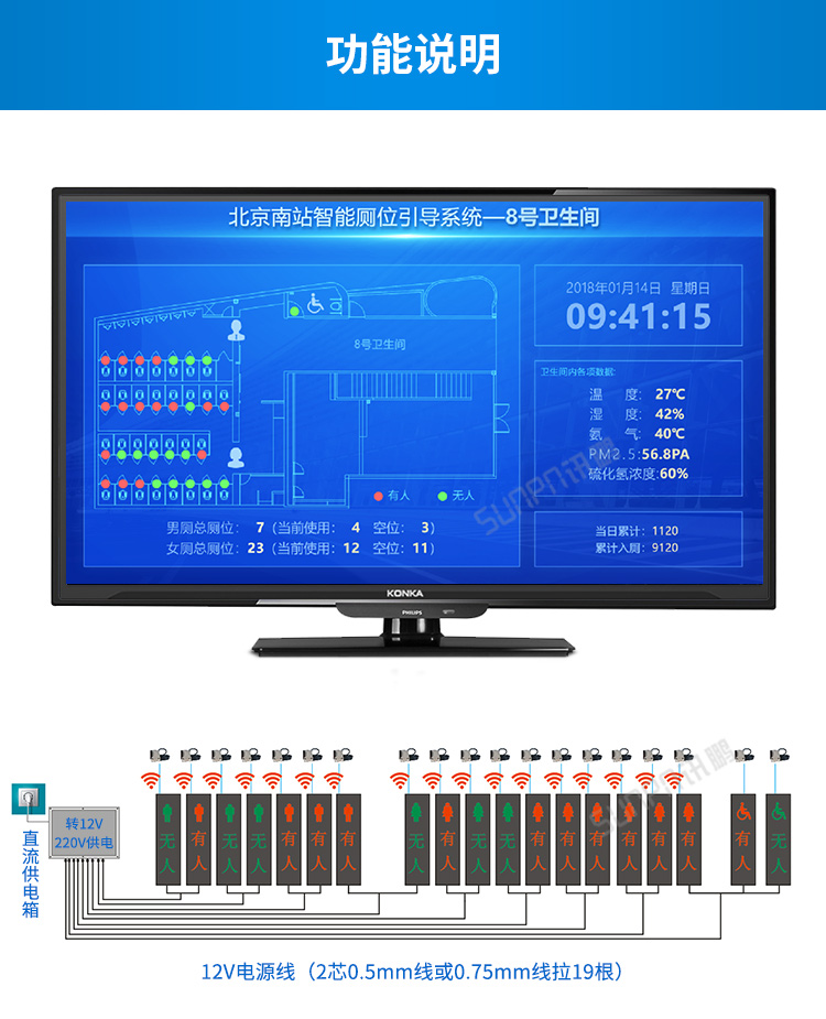 智慧厕所公厕有人无人显示屏厕位智能引导系统状态环境人流量监控