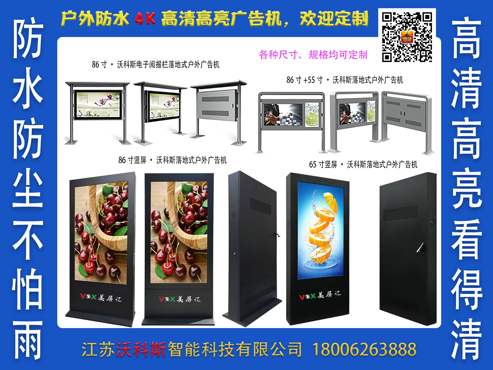 户外防水广告机欢迎定制,高清高亮看得清